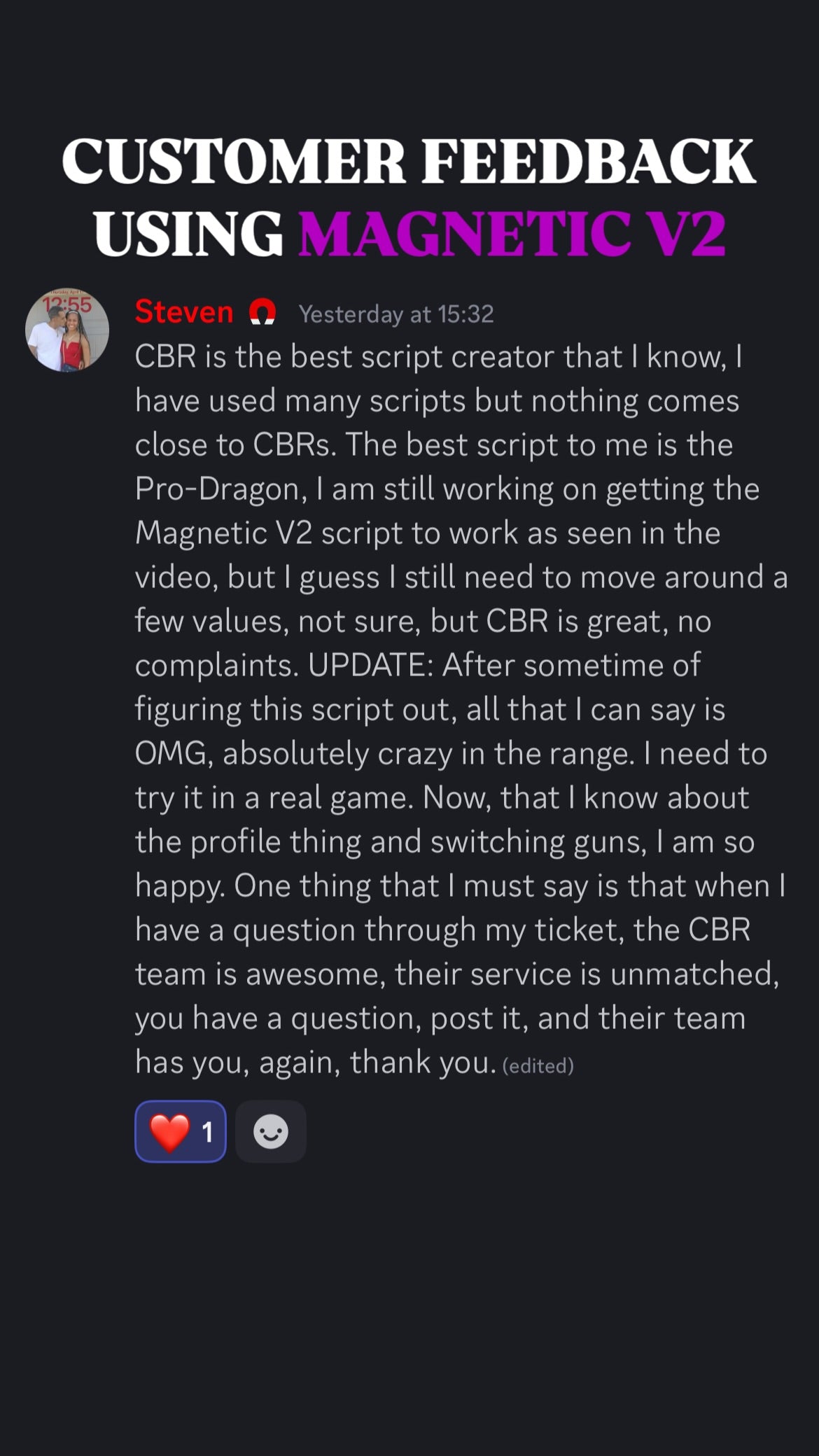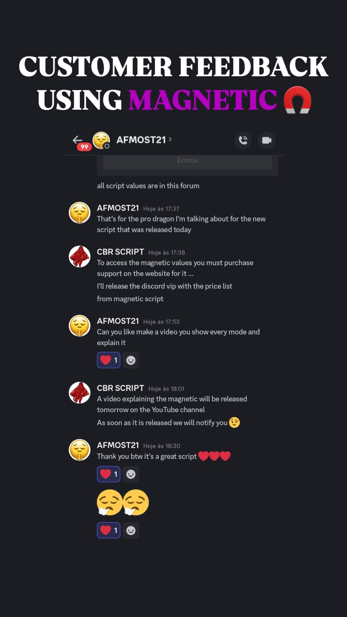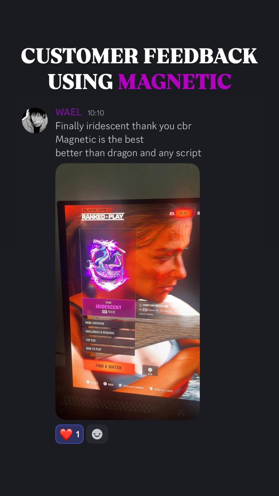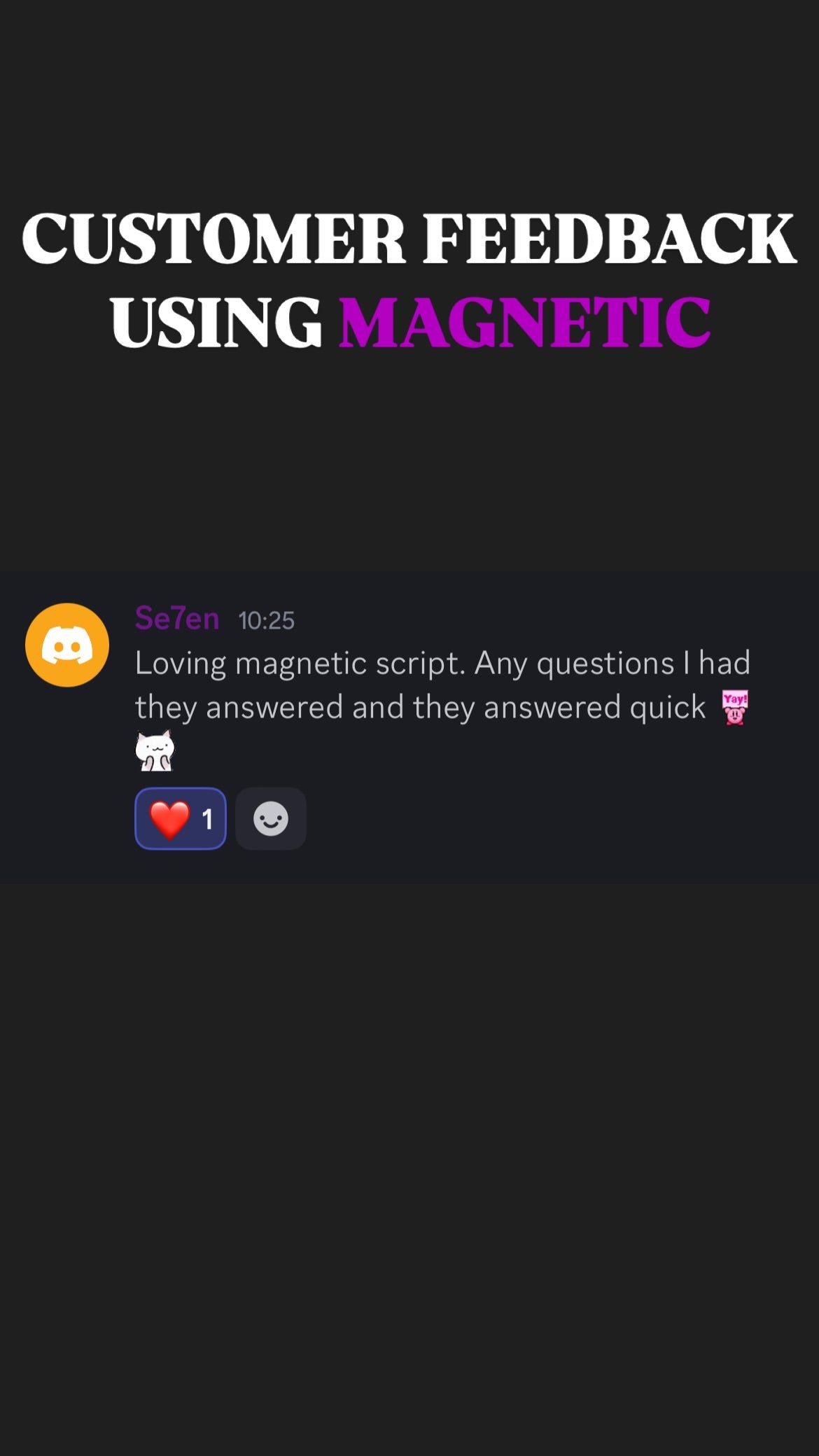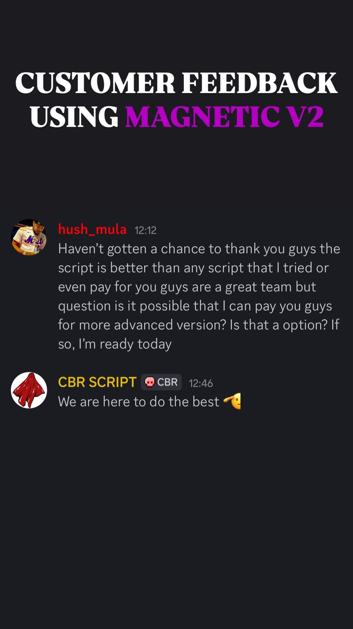 ๐ฅ When you get Magnetic Script With Support, you donโt just get the best aim assistโ you also join an exclusive community of like-minded players who share your passion for gaming excellence. Our Discord community is the perfect place to connect with other Magnetic Script users, share tips, and level up together!